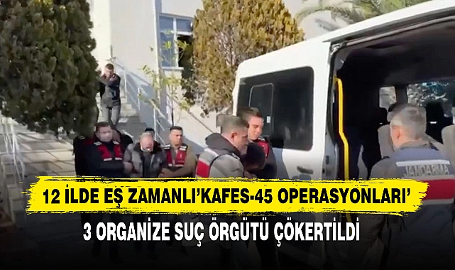 İçişleri Bakanı Yerlikaya, Aydın, Kastamonu ve Balıkesir merkezli 12 ilde eş zamanlı düzenlenen "Kafes-45" operasyonlarında 3 organize suç örgütünün çökertildiğini, elebaşlarının da bulunduğu 63 şüphelinin yakalandığını bildirdi.