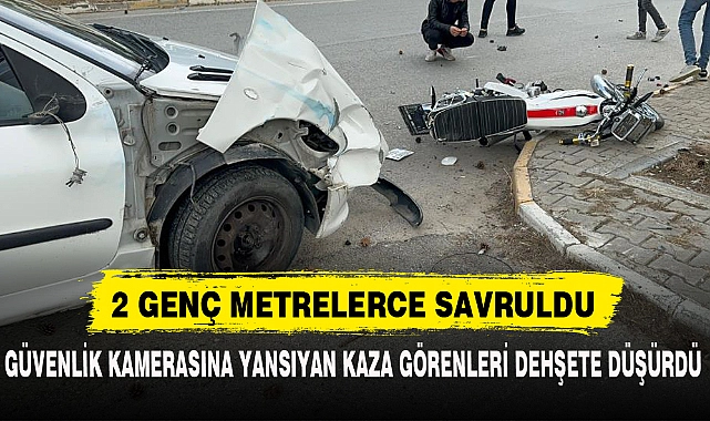 Güvenlik kameralarına yansıyan kazada otomobilin motosiklete çarptıktan sonra iki gencin metrelerce ileri fırladıkları gözlendi.