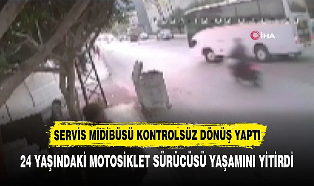 Servis midibüsüyle çarpışan motosikletin 24 yaşındaki sürücüsü hayatını kaybetti. Kaza anı anbean kameraya yansıdı.