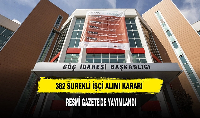 İçişleri Bakanlığı, Göç İdaresi Başkanlığına 382 sürekli işçi alınacağını duyurdu.