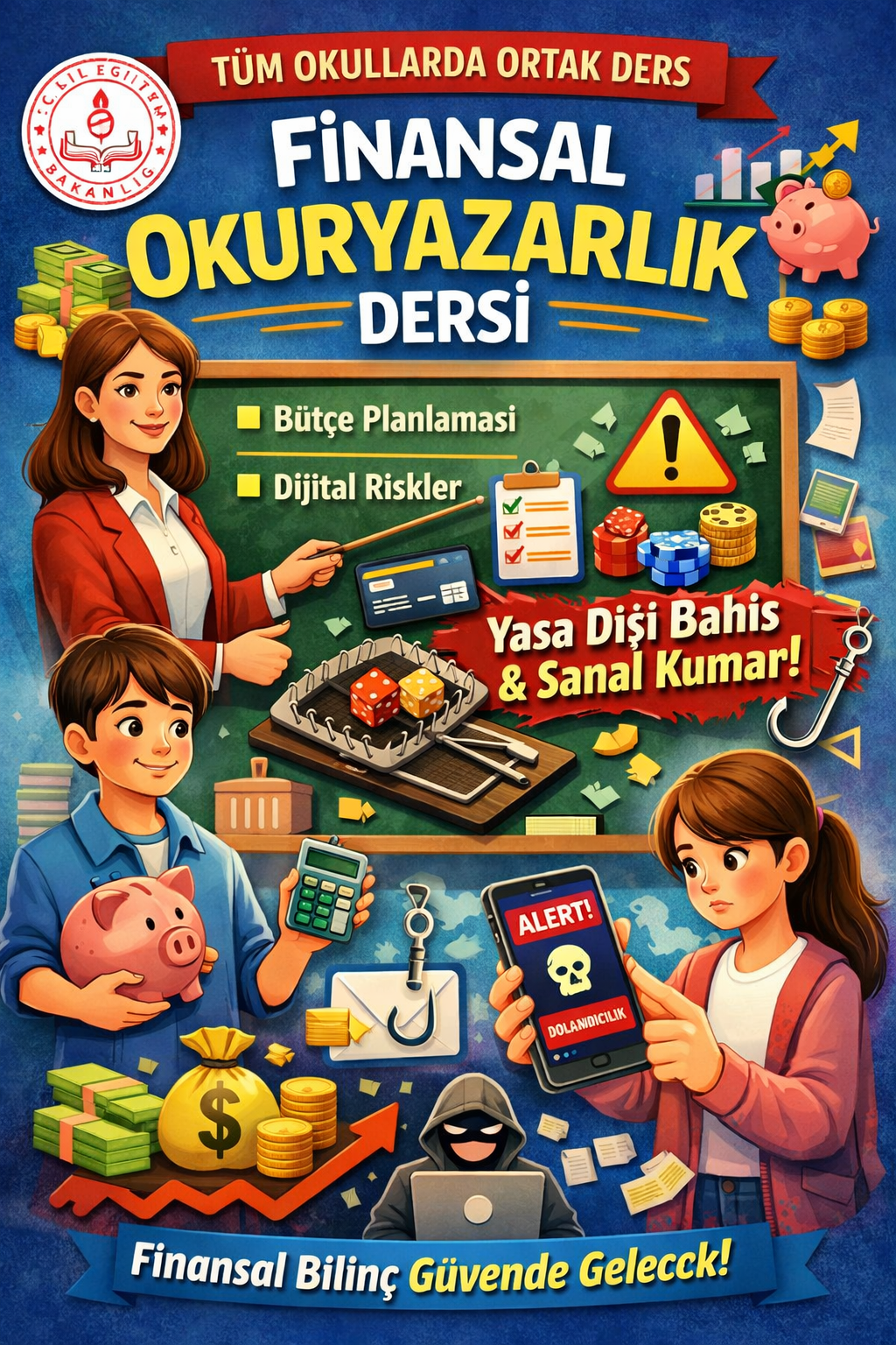 Milli Eğitim Bakanlığı, Türkiye Yüzyılı Maarif Modeli kapsamında 24 Mart’ta tüm temel eğitim ve ortaöğretim kurumlarında ilk ders saatinin “Finansal Okuryazarlık” olarak işleneceğini açıkladı. Öğrenciler yasa dışı bahis, sanal kumar ve dijital dolandırıcılık risklerine karşı bilinçlendirilecek.