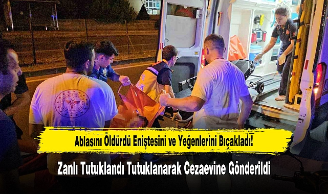 Ablasını bıçaklayarak öldüren, eniştesi ve iki yeğenini de yaralayan zanlı, tutuklanarak cezaevine gönderildi.