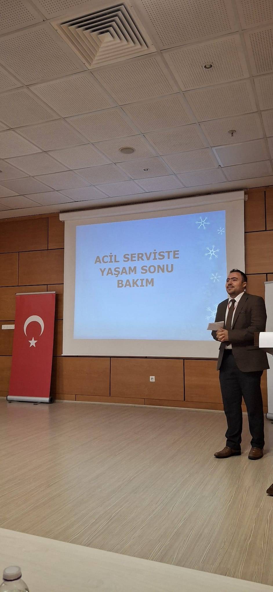 Afyonkarahisar İl Müftülüğü’ne bağlı Manevi Destek Birimi görevlileri Süleyman Eğri ve Ali Özdemir tarafından, Afyonkarahisar Devlet Hastanesi’nde görev yapan acil servis hemşirelerine yönelik “Acil Serviste Yaşam Sonu Bakım” başlıklı bir sunum gerçekleştirildi.