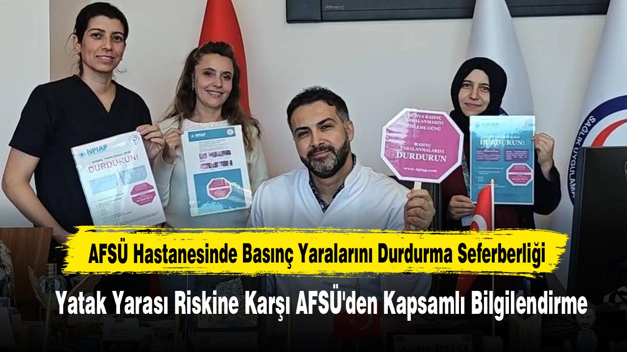 Afyonkarahisar Sağlık Bilimleri Üniversitesi (AFSÜ) Hastanesi personeli, "Dünya Basınç Yaralanmalarını Durdurma Günü" vesilesiyle düzenlenen farkındalık etkinliğinde sağlık çalışanlarını basınç yaralanmaları konusunda bilgilendirdi.