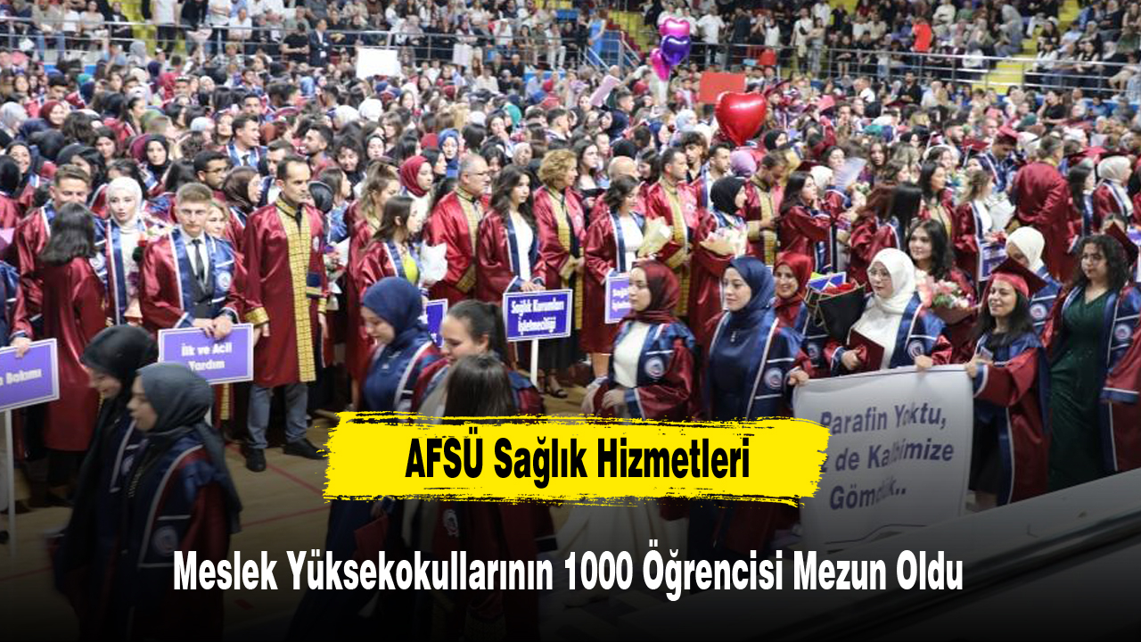 1992’de kurulan ve bu yıl 32. dönem mezunlarını veren Atatürk SHMYO ve 5. dönem mezunlarını veren Bolvadin ve Şuhut SHMYO için düzenlenen mezuniyet töreninde Saygı Duruşu ve İstiklal Marşı’nın okunmasının ardından Atatürk SHMYO okul birincisi Zeynep Erbüyür bir konuşma yaptı. Erbüyür’den sonra konuklara hitap eden Yüksekokul Müdürü Doç. Dr. Pakize Özyürek, AFSÜ’de mesleki idealleri ile uyumlu, güncel bilgi, beceri ve donanıma sahip, sorumluluk bilincine sahip bireyleri sağlık sektörüne kazandırmaktan gurur duyduklarını söyledi.