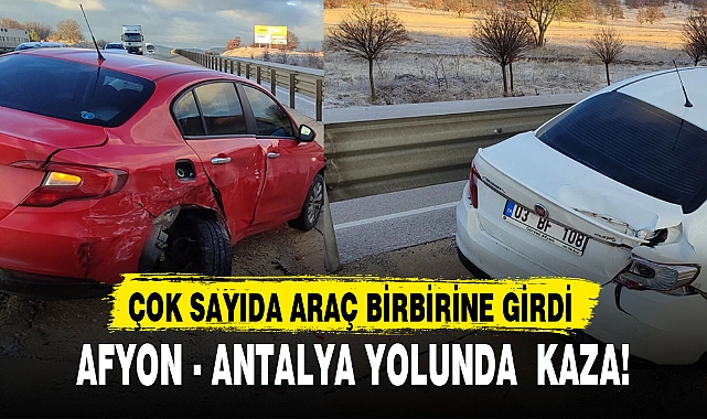 Afyonkarahisar-Antalya yolunda sabah saatlerinde gizli buzlanma nedeniyle bazı araçlar birbirine çarparak kaza yaptı.