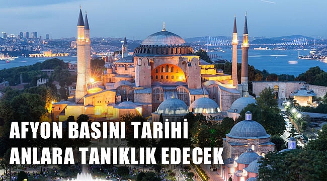 Afyonkarahisar’da çalışan basın mensupları Danıştay kararı ve Cumhurbaşkanımız Recep Tayyip Erdoğan'ın imzasıyla 24 Temmuz'da yeniden ibadete açılacak Ayasofya Camisi’ne gidecek.