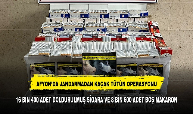 Operasyon, İhsaniye ilçesine bağlı Gazlıgöl beldesinde yapıldı. Edinilen bilgilere göre, beldede ticari faaliyet yürüten Y.K., isimli şahsın iş yerinde kaçak sigara ve tütün satışı yaparak kendisine haksız kazanç sağladığı bilgisi alınan jandarma ekipleri harekete geçti. Şahsın iş yerine baskın düzenleyen ekipler yaptıkları aramada 16 bin 400 adet makarona doldurulmuş sigara, 8 bin 600 adet boş makaron ve bin 800 gram tütün ele geçirildi. Olayın ardından şahıs hakkında işlem yapıldığı bildirildi. >>İHA