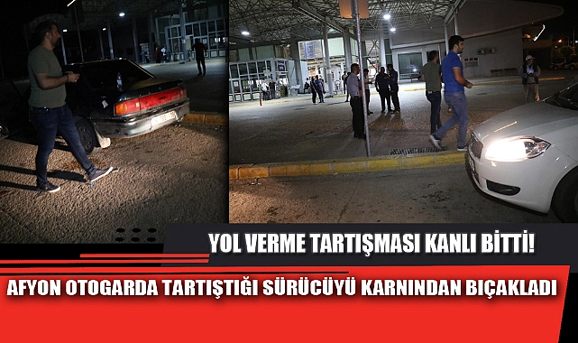 Olay, kent merkezi Dörtyol mahallesindeki şehirlerarası otogarda meydana geldi. Edinilen bilgilere göre, işletmenin otopark bölümünde 03 T 0190 plakalı ticari taksinin sürücüsü R.Ş. ile 06 TDB 18 plakalı aracın sürücüsü M.V., arasında yol verme meselesi yüzünden tartışma yaşandı. Tartışmanın kavgaya dönüşmesi üzerine iddiaya göre, R.Ş., araçtan aldığı bıçakla M.V.’yi karın bölgesinden bıçaklayıp kaçtı. Olayın ardından çevredekilerin haber vermesi ile kanlar içinden kalan M.V., bölgeye çağrılan 112 Acil servis ambulansı ile Afyonkarahisar Devlet Hastanesine kaldırıldı.