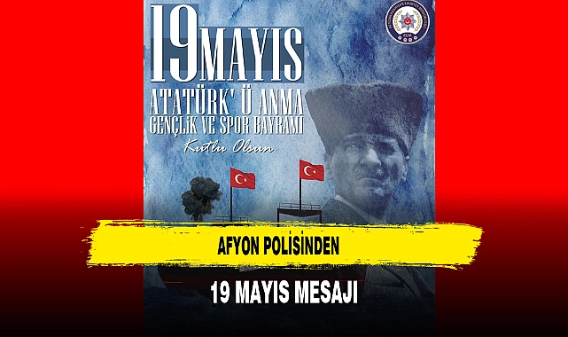 Afyonkarahisar İl Emniyet Müdürlüğü, 19 Mayıs Atatürk’ü Anma, Gençlik ve Spor Bayramı dolayısıyla bir kutlama mesajı yayınladı. Emniyet Müdürlüğünün sosyal medya hesabı üzerinden paylaşılan mesajda, gençlerin milletin geleceğindeki önemi vurgulandı.