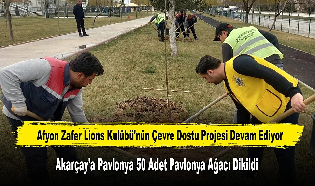 Afyon Zafer Lions Kulübü, Afyon Belediyesi Park ve Bahçeler Müdürlüğü iş birliğiyle Akarçay Kültür Parkı'nda 50 adet pavlonya ağacı dikimi gerçekleştirdi.