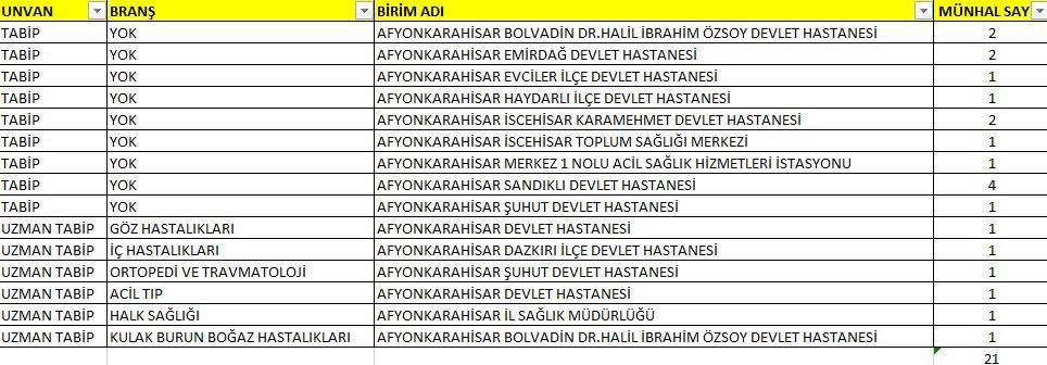 Devlet Hizmet Yükümlülüğü (mecburi hizmet) kurası kapsamında Afyonkarahisar’a yeni hekim kadroları tahsis edildi. Sağlık hizmetlerinin güçlendirilmesi amacıyla yapılan planlama doğrultusunda kente 15 pratisyen hekim ile 6 uzman hekim olmak üzere toplam 21 hekim kadrosu açıldı.