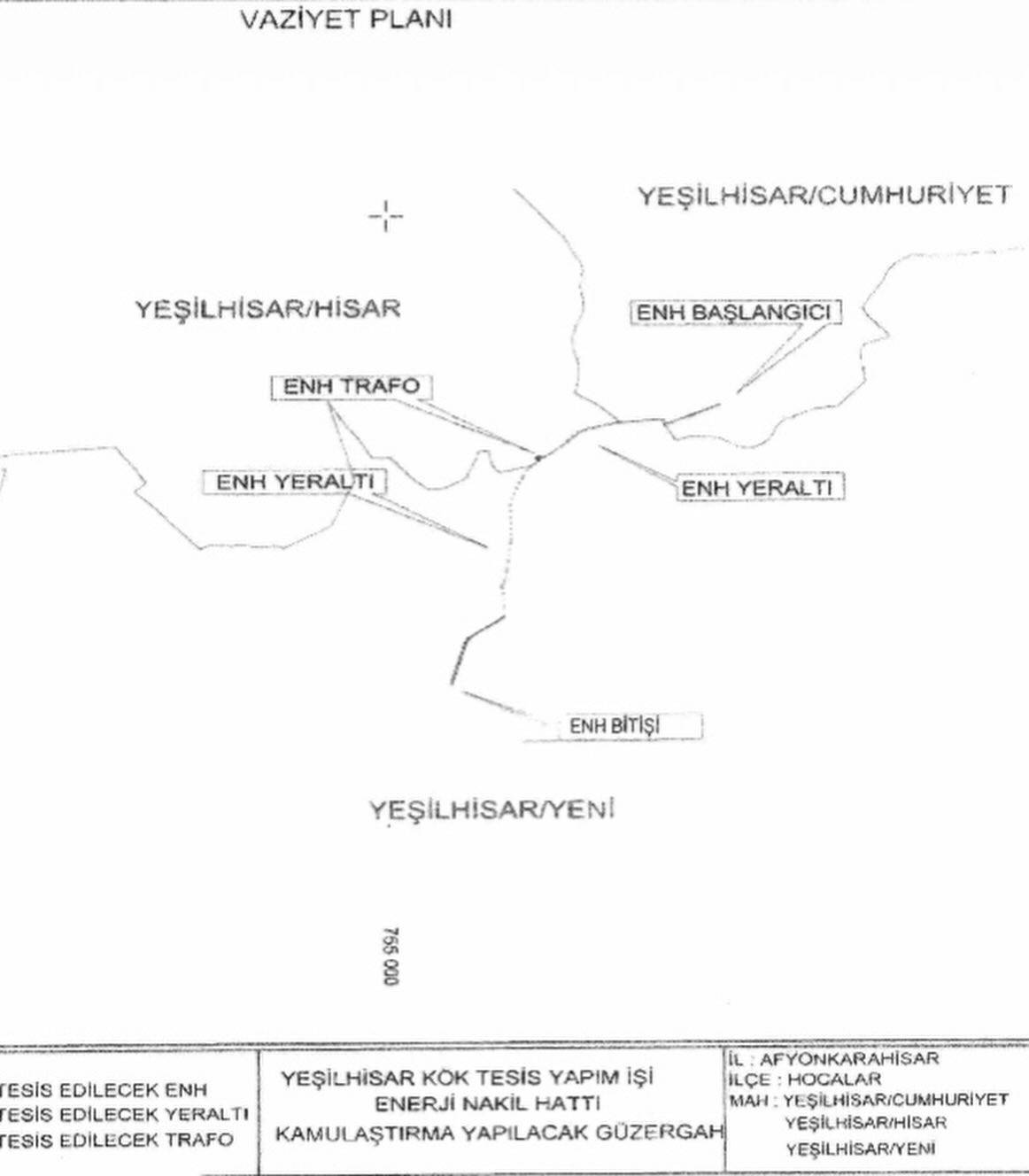 Karara göre Afyonkarahisar’da hayata geçirilecek Akpınarlı KÖK ENH ve Yeşilhisar KÖK ENH enerji nakil hattı projeleri için gerekli taşınmazlarda acele kamulaştırma ve irtifak işlemleri yapılacak. Söz konusu çalışmalar, enerji iletim hatlarının kurulumu ve proje güzergâhında gerekli altyapı faaliyetlerinin yürütülmesini kapsayacak.