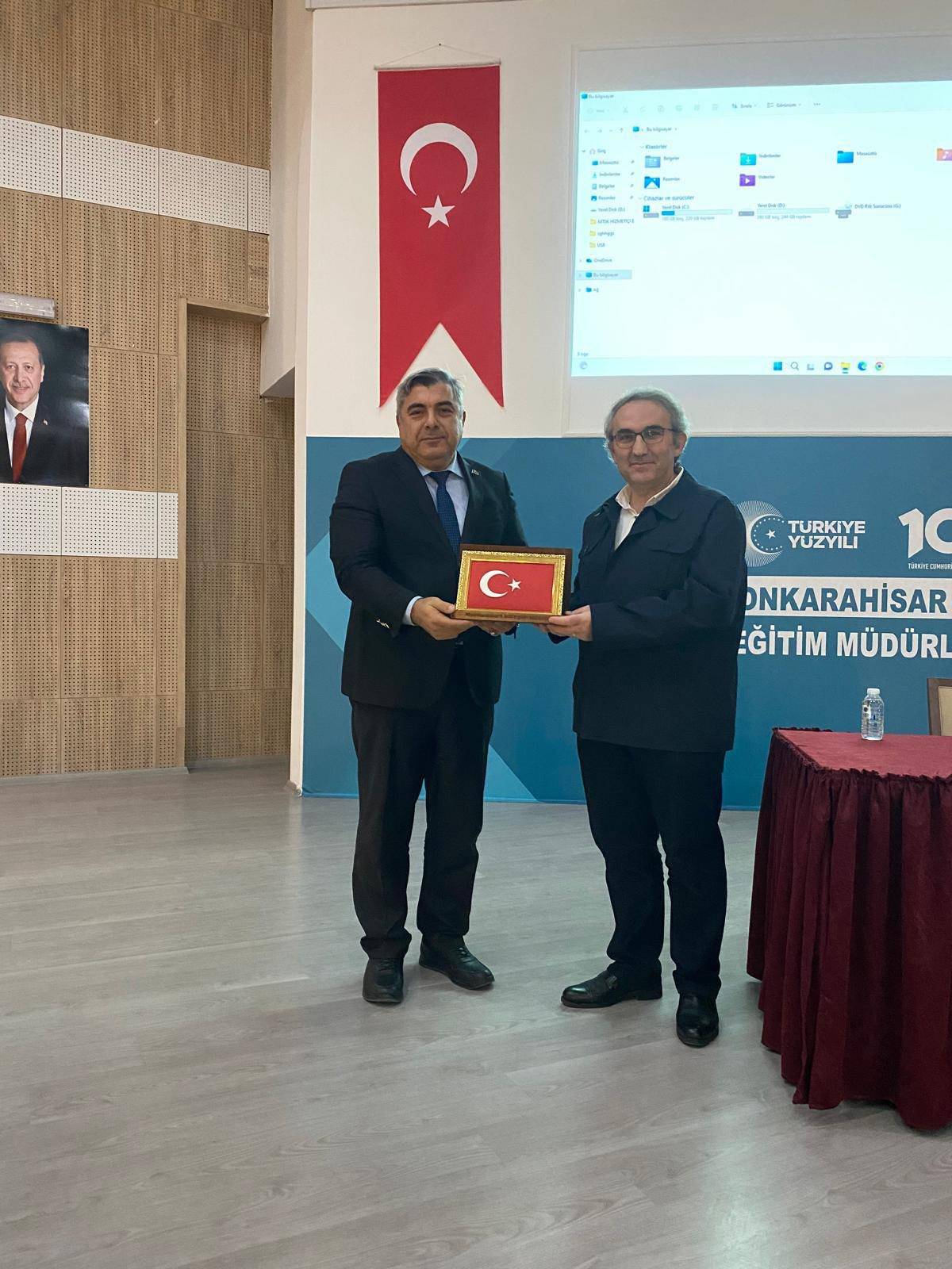 Konferansın ardından İl Milli Eğitim Müdürü Miraç Sünnetci, katkılarından dolayı Prof. Dr. Abdullah İnce’ye Türk Bayrağı takdim etti.