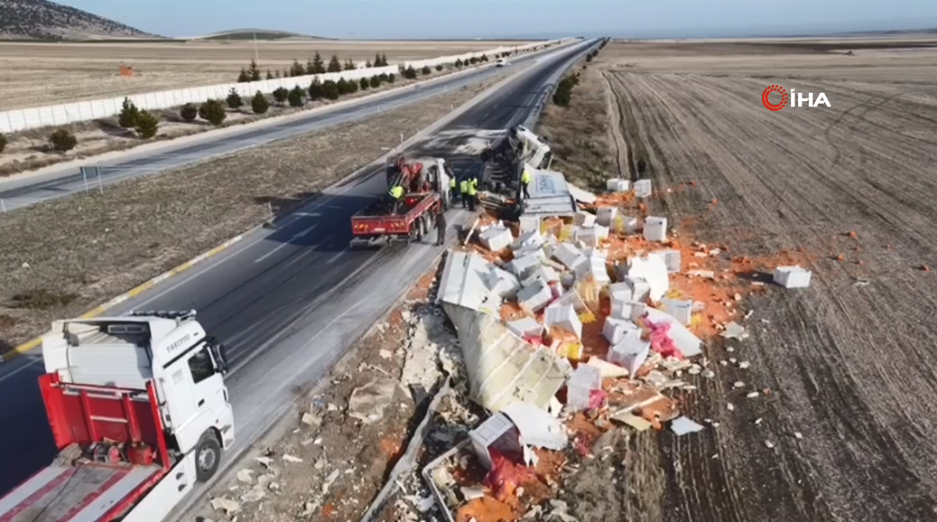 Afyon’da Havuç Yüklü Tır Devrildi, Tonlarca Havuç Ziyan Oldu