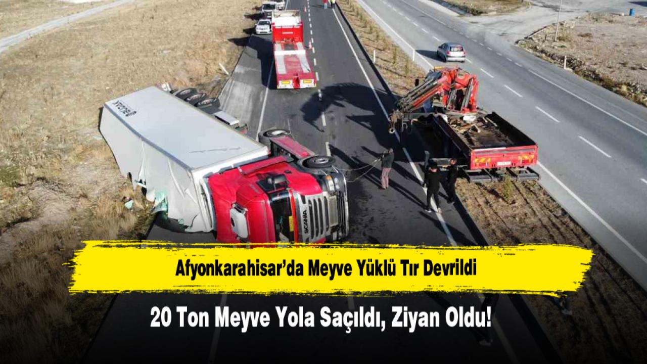 Afyon’da Meyve Yüklü Tır Devrildi: 20 Ton Meyve Yola Saçıldı, Ziyan Oldu!