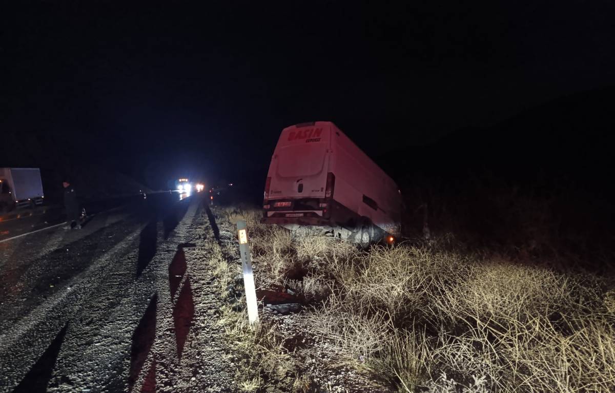 Afyonkarahisar’da meydana gelen trafik kazasında kayarak yoldan çıkan ve şarampole devrilen minibüste 2 kişi yaralandı.