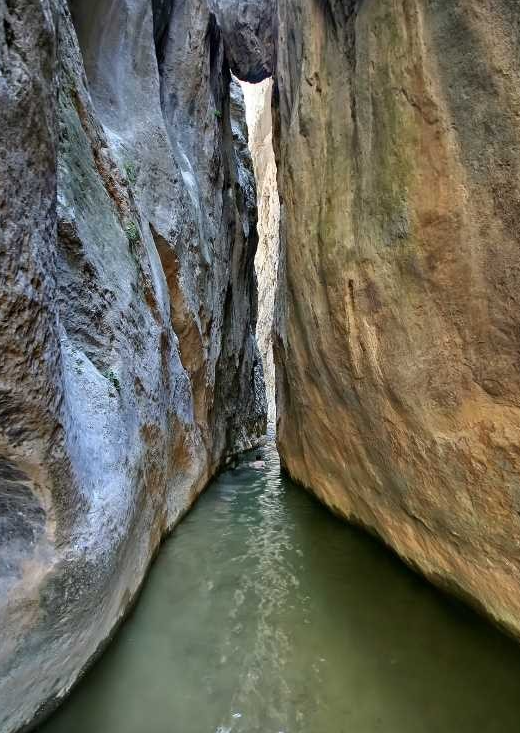 Kanyonun en dar noktalarından birinde yaklaşık 25 metre yükseklikte dev bir kaya kütlesi iki duvar arasında sıkışmış durumda. Bu noktada kanyon o kadar daralıyor ki bazı anlarda gökyüzü bile görülmez hale geliyor. Ziyaretçiler bu bölümden geçebilmek için kayanın altından yüzerek ilerlemek zorunda kalabiliyor.