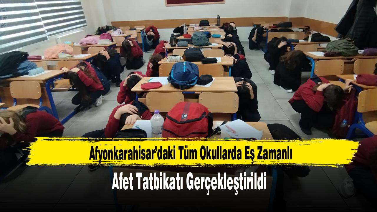 Milli Eğitim Bakanlığı tarafından ekim ayının “Afetler ve Dayanıklılık Ayı” olarak ilan edilmesi kapsamında, 13 Ekim Dünya Afet Risklerinin Azaltılması Günü’nde Afyonkarahisar’daki tüm okullarda aynı anda afet tatbikatı gerçekleştirildi. MEB AKUB, Sivil Savunma ve İş Sağlığı Güvenliği (İSG) Birimlerinin koordinasyonunda yürütülen tatbikat öncesinde öğrenciler, Milli Eğitim Bakanı Prof. Dr. Yusuf Tekin’in afet bilincine dair mesajını dinledi.