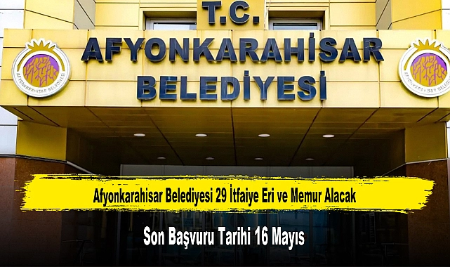 Afyonkarahisar Belediyesi, 2025 yılı için 29 itfaiye eri ve memur alacağını duyurdu. Başvurular, 13-16 Mayıs 2025 tarihleri arasında yapılacak.