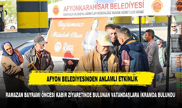 Afyonkarahisar Belediyesi, Ramazan Bayramı öncesi şehit kabirlerini ziyaret eden vatandaşları unutmadı. Şehitliklere gelen vatandaşlara ikramlarda bulunarak manevi atmosferde birlik ve beraberliği pekiştirdi.Ramazan Bayramı öncesinde şehitliklere yoğun bir ziyaretçi akını yaşanırken, Afyonkarahisar Belediyesi bu özel günlerde vatandaşların dualarına eşlik etmek ve onları rahat ettirmek amacıyla harekete geçti. Belediye ekipleri, şehit kabirlerinin bulunduğu mekanlara özel olarak hazırladıkları ikramlarla gelen ziyaretçilere destek olmayı ihmal etmedi.Vatandaşlar, şehitlerin kabirlerini ziyaret ederek dua etmenin yanı sıra, belediyenin düzenlediği ikramlarla da moral buldu. Belediye tarafından sunulan çay, su ve atıştırmalık ikramlar, ziyaretçilerin ihtiyaçlarını karşılamanın yanı sıra birlik ve beraberlik duygularını pekiştirdi.>>EVRN ATCI