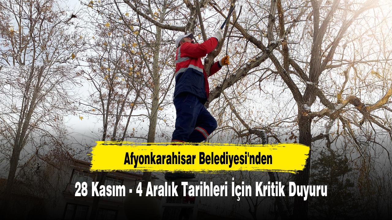 Afyonkarahisar Belediyesi'nden 28 Kasım - 4 Aralık Tarihleri İçin Kritik Duyuru