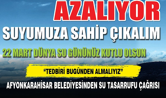 Belediye Başkanı Mehmet Zeybek ise yaptığı açıklamada, suyun bilinçli kullanılması ve tasarruf yapılması konusunda çağrıda bulundu. Zeybek Başkan; “Tüm vatandaşlarımıza bir kez daha çağrıda bulunuyorum. Kaynakların etkin ve verimli kullanılması için vatandaşlarımızın da tasarruf konusunda gayret ve özen göstermesi son derece önemli. Gelecekte su sorunu yaşamamak için tedbiri bugünden almalıyız. Su kaynaklarımızı korumanın ve gelecek nesillere aktarmanın en iyi yolu suyu bilinçli kullanmaktan geçmektedir. Vatandaşlarımızdan suyu özenle ve bilinçli kullanmalarını, israftan kaçınmalarını rica ediyoruz. Belediye olarak su tasarrufuyla ilgili mücadelemizi de kararlılıkla sürdüreceğiz. Su geleceğimizdir, onun elimizden akıp gitmesine izin vermemeliyiz. Bu vesile ile 22 Mart Dünya Su Günü’nü kutluyor, farkındalığa vesile olmasını temenni ediyorum.” dedi. >>YASİN AY
