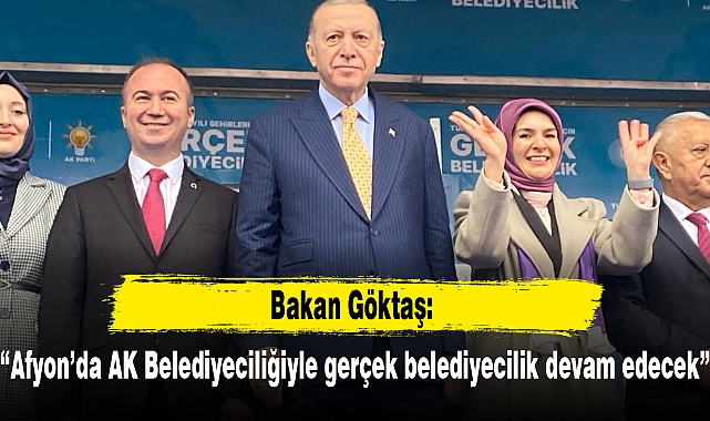 Göktaş, Cumhurbaşkanı Erdoğan'ın 1994'te başlattığı hizmet odaklı belediyecilikle şefkat, adalet ve doğruluk ilkeleriyle 22 yılın geride kaldığına dikkati çekerek, şöyle konuştu: "AK Parti belediyeciliğiyle şehirlerimizin sorunlarını çözdük. Şehirlerimizin çehreleri değişti. Afyonkarahisar da güzelleşti değil mi? Herkesin gurur duyduğu, Türkiye'nin en mutlu şehirlerinden biri Afyonkarahisar değil midir? Gerçek belediyecilik, AK Parti belediyeciliğidir. İnşallah bu bölgede Afyonkarahisar'da AK belediyeciliğiyle, gerçek belediyecilik devam edecek. Afyonkarahisar'da Belediye Başkanımız Mehmet Zeybek, AK Parti'nin hizmet bayrağını dalgalandırdı. Çok güzel hizmetler verdi. Mehmet Zeybek'e ve tüm ekibine bugüne kadar yapmış olduğu bütün çalışmalar için teşekkür ediyoruz. Şimdi de 31 Mart akşamında inşallah Afyonkarahisar'da Hüseyin Ceylan Uluçay ile yola devam. Gerçek belediyecilik inşallah Afyonkarahisar'da devam edecek."