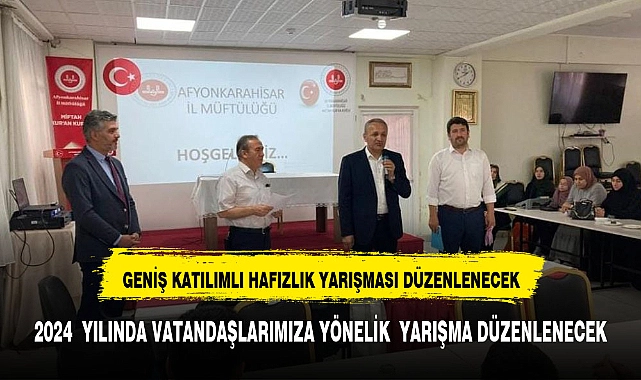 Afyonkarahisar Mütülüğü tarafından Kur’an kurslarına katılımı artırmak, hafızlık eğitimini ve Kur’an-ı Kerim’i yüzünden güzel okumayı teşvik etmek amacıyla, kurslarda hafızlık eğitimi alan öğrenciler arasında, 'Hafızlık ve Kur’an-ı Kerim’i Yüzünden Güzel Okuma Yarışması düzenlenecek. Afyonkarahisar Müftülüğünde yer alan bilgiye göre, "Başkanlığımız Mushafları İnceleme ve Kıraat Kurulunca hafızlık müessesesinin korunmasına katkı sunmak ve daha önce hafızlık yapmış, farklı sebeplerle hıfzını zayıflatmış vatandaşlarımızın hafızlıklarını pekiştirmelerine yardımcı olmak amacı ile 2024 yılında, Diyanet İşleri Başkanlığında çalışmayan ve çalışmamış olan vatandaşlarımıza yönelik hafızlık yarışması düzenlenecektir." ifadelerine yer verildi.