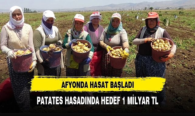 Afyonkarahisar’ın Dinar ilçesinde patates hasadı başladı. Bu yıl patatesten elde edilecek gelirin 1 milyar TL olması bekleniyor.