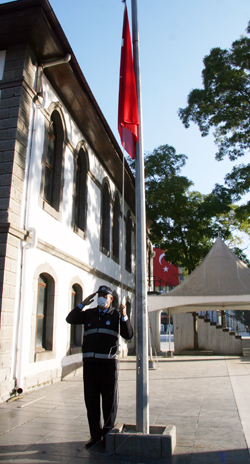 Öte yandan, kentin simgesi olan 226 metre yükseklikteki tarihi Karahisar Kalesi’nde de bayraklar yarıya indirildi.