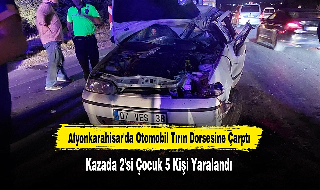 Afyonkarahisar'ın İscehisar ilçesinde tırın dorsesine çarpan otomobildeki 2'si çocuk 5 kişi yaralandı.