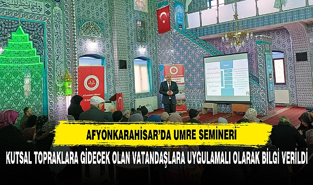 Seminere, İl Müftü Yardımcısı Harun Küçük, Hac ve Umre Şube Müdürü Memet Nuri Durdu, Din Görevlisi Niyazi Sak tarafından umrecilere kutsal yolculuğa çıkmadan önce, yolculuk esnasında uyulması gereken kurallar, dikkat edilmesi gereken hususlar ve kutsal yerler hakkında çeşitli bilgiler uygulamalı olarak verildi. Afyonkarahisar İl Müftülüğün’den yapılan açıklamada: “Kutsal beldelere gidecek olan tüm vatandaşlara hayırlı yolculuklar diler bereketli zamanlar temenni ederiz” denildi.
