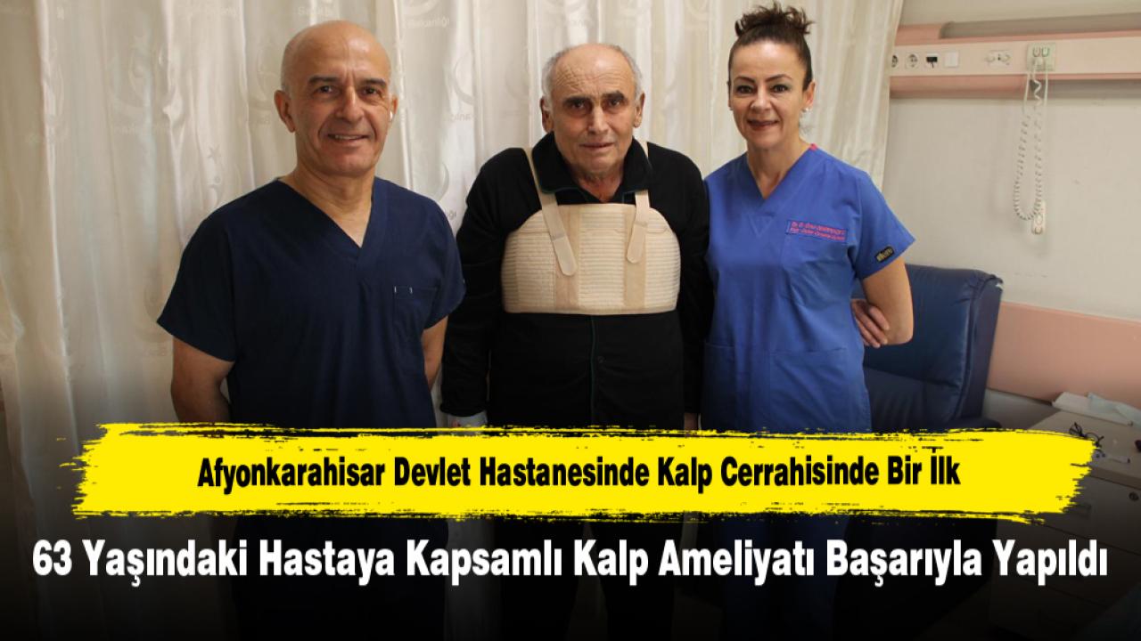 Afyonkarahisar Devlet Hastanesinde ilk kez gerçekleştirilen kapsamlı kalp ameliyatında, aort kapağı iki yaprakçıklı olan ve ciddi darlık bulunan 63 yaşındaki erkek hastaya mekanik kapak takıldı, genişlemiş aort damarına yapay damar yerleştirildi.