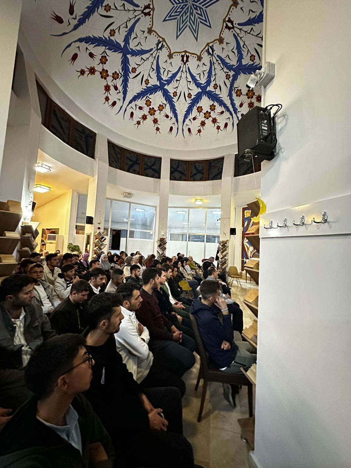 Programda konuşmacı olarak yer alan Doç. Dr. Emin Uz, “Müslüman Gencin Üniversite Serüveni” başlıklı söyleşide gençlerle bir araya geldi.