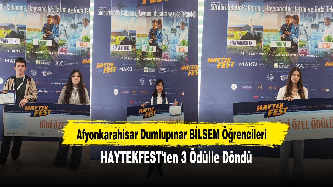 Afyonkarahisar Dumlupınar Bilim ve Sanat Merkezi (BİLSEM) öğrencileri, Mehmet Akif Ersoy Üniversitesi'nin ikincisini düzenlediği HAYTEKFEST Tarım-Hayvancılık-Gıda Yarışması'ndan büyük bir başarıyla 3 ödül kazanarak döndü.