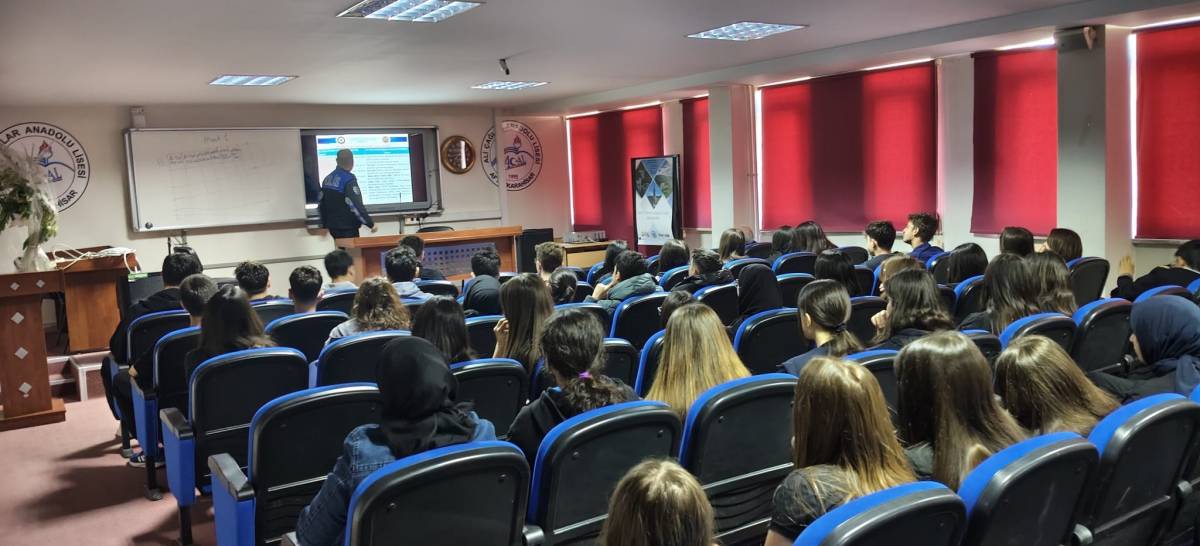 Emniyet yetkilileri tarafından gerçekleştirilen programda, öğrencilerin günlük yaşamda karşılaşabilecekleri riskler ve bu risklere karşı alınması gereken önlemler detaylı şekilde ele alındı. Eğitim kapsamında özellikle gençlerin güvenliği ve toplumsal bilinç düzeyinin artırılması hedeflendi. Program çerçevesinde öğrencilerle birebir iletişim kurularak merak ettikleri sorular da yanıtlandı.