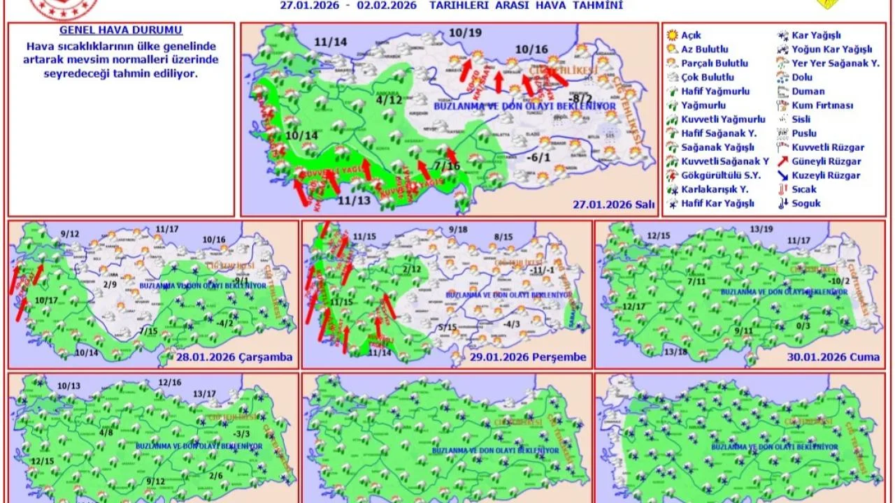 Açıklamada ayrıca, akşam saatlerinde başlayacak yağmur şeklindeki yağışların aralıklı olarak gece boyunca devam etmesinin beklendiği belirtildi. Şehir merkezinde yağmur şeklinde etkili olması öngörülen yağışların, yüksek kesimler ve karayolu geçitlerinde karla karışık yağmur ve yer yer kar şeklinde görüleceği ifade edildi.