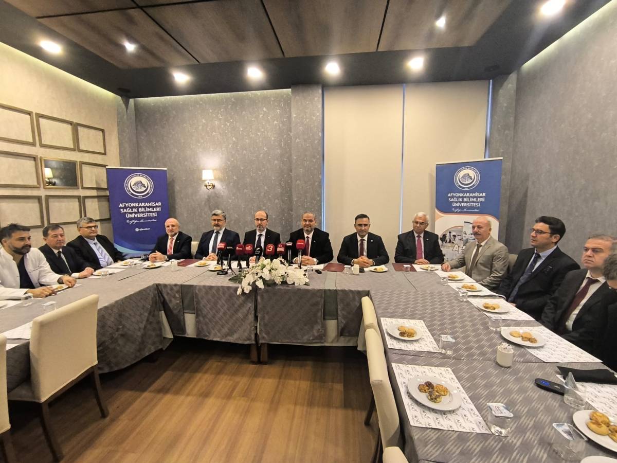 Toplantıda konuşan İl Sağlık Müdürü Dr. Hakkı Öztürk, ildeki sağlık projeleri ve üniversite ile yürütülecek ortak çalışmalar hakkında bilgi verdi. Protokolün şehre hayırlı olmasını dileyen Öztürk, " Bugün sizlerle, ilimizde yapılacak sağlık projeleri ve üniversitemizle yürütülecek ortak çalışmalar hakkında bilgi paylaşmak üzere bir araya geldik. Bu mübarek günde imzaladığımız protokolün, şehrimize hayırlı olmasını diliyorum. Bugün itibarıyla Afyonkarahisar, halkın ihtiyaçlarını büyük ölçüde karşılayabilen bir sağlık kapasitesine sahiptir. Gerek tesislerimiz gerek donanımlarımız gerekse insan kaynağımız sürekli güncellenmek zorunda. Bu yüzden hem yeni yatırımları şehrimize kazandırmak hem de mevcut kapasitemizi en verimli şekilde kullanmak için çalışmalar yapıyoruz. Yılın ilk yarısında 150–200 seviyesinde olan il dışı sevkler bugün 50’lere kadar gerilemiş durumda. Bu sayıyı daha da düşürmek için eksik alanlarımızı tespit ediyor ve hızla çözüm üretiyoruz. yakın zamanda hizmete giren Sinanpaşa Devlet Hastanesi de protokol kapsamındaki önemli merkezlerden biri olacak. Rektörlükle yapılan çalışmalar sonucunda, hastanede hem Sağlık Bakanlığı poliklinik ve yataklı hizmetleri devam edecek hem de üniversitenin üçüncü basamak sağlık hizmetleri verilecek. Ayrıca AFSÜ’nün burada palyatif bakım ünitesi açarak yatak kapasitesine destek sağlayacak." dedi.