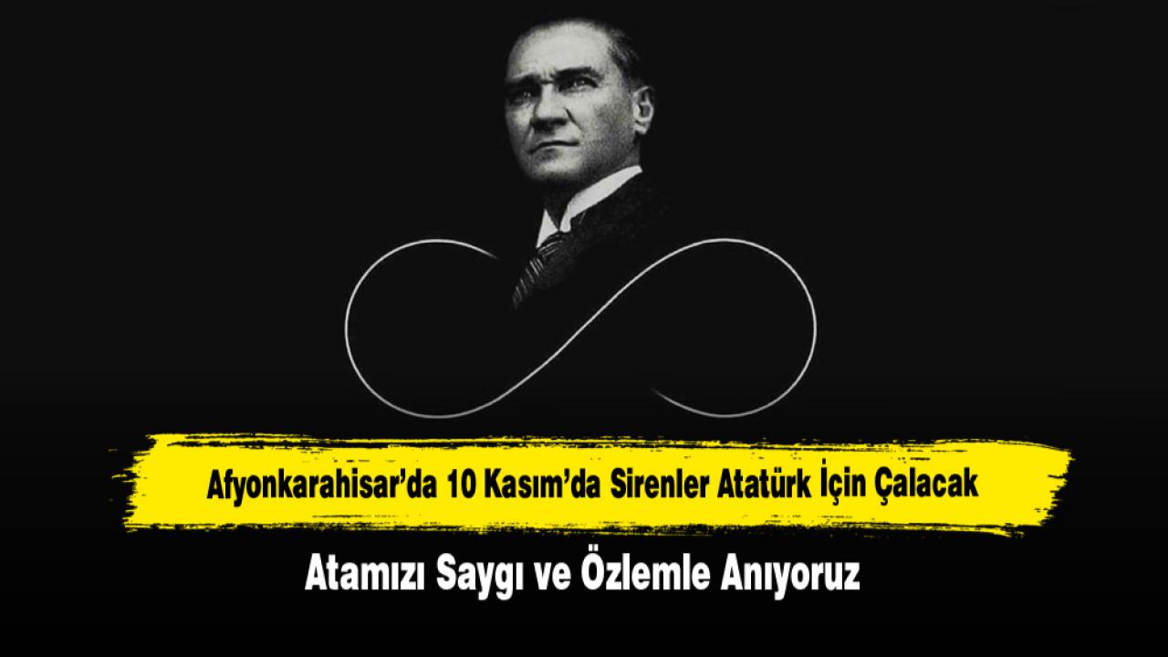 Gazi Mustafa Kemal Atatürk’ün ebediyete irtihalinin 87. yıl dönümü dolayısıyla Afyonkarahisar’da 10 Kasım Pazartesi günü düzenlenecek anma programı kapsamında şehir genelinde bayraklar yarıya indirilecek, sirenler çalacak ve çeşitli etkinliklerle Atatürk anılacak.