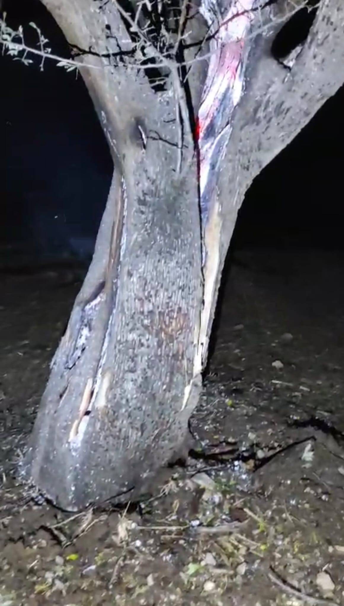 Şuhut’ta yıldırımın düştüğü ağacın görüntüleri ise bölgede koyun otlatan bir çoban tarafından cep telefonu kamerası ile kaydedildi.