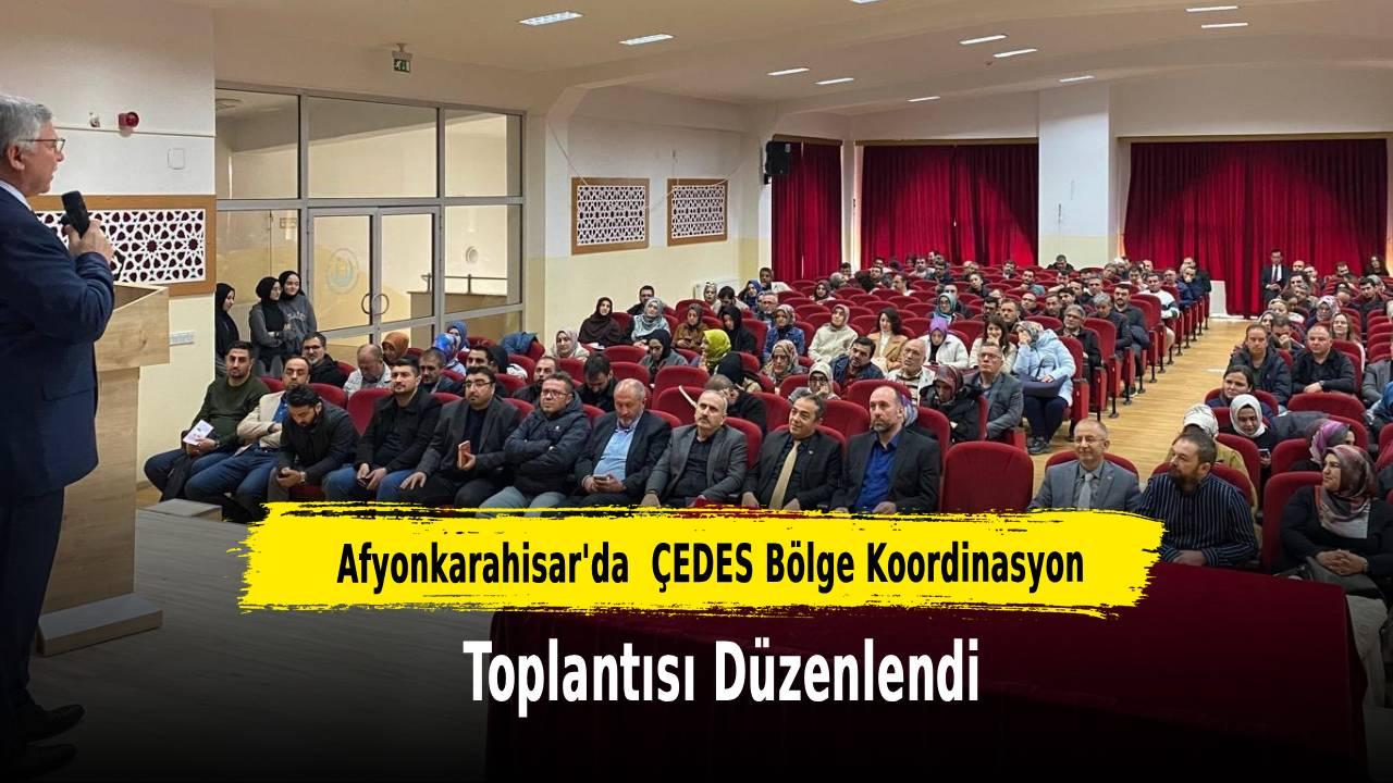 Afyonkarahisar Millî Eğitim Müdürlüğü tarafından organize edilen ÇEDES (Çevreme Duyarlıyım, Değerlerime Sahip Çıkıyorum) Bölge Koordinasyon Toplantısı, TOBB Kız Anadolu İmam Hatip Lisesi Konferans Salonu’nda geniş bir katılımla gerçekleştirildi.