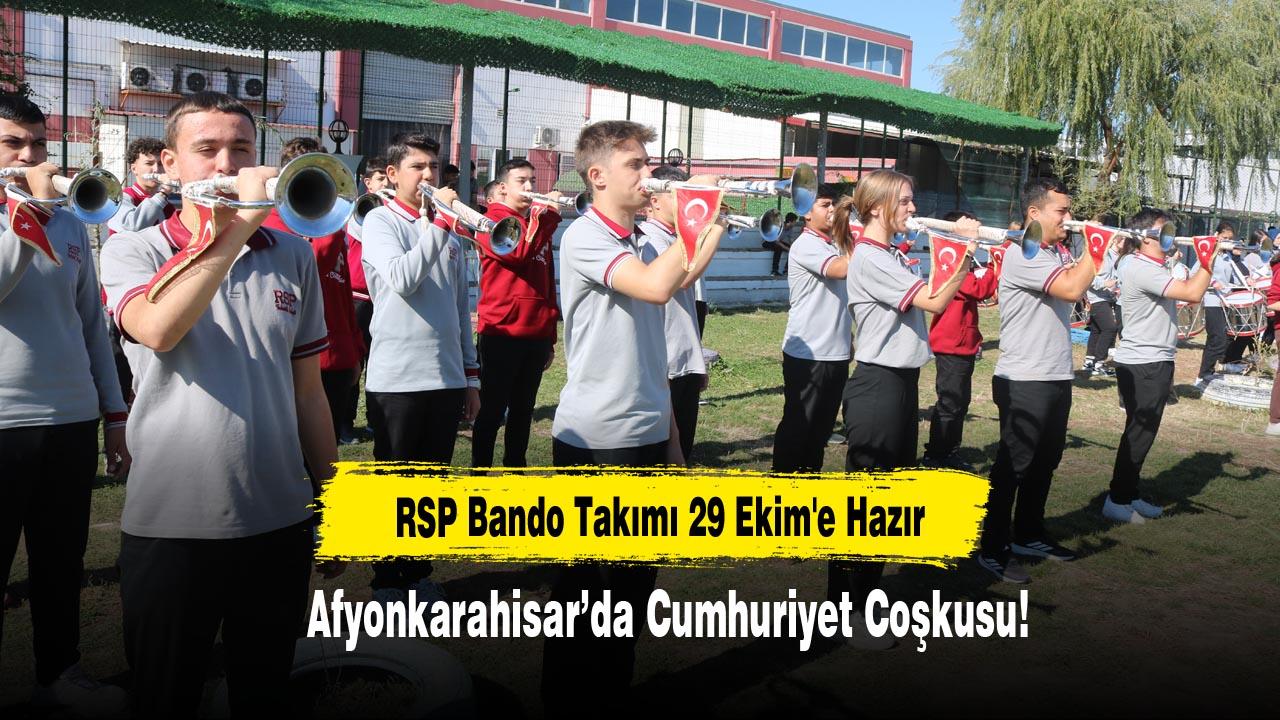 Afyonkarahisar'daki 29 Ekim Cumhuriyet Bayramı kutlamalarına sayılı günler kala, her yıl olduğu gibi bu sene de sahne alacak olan RSP Bando Takımı, şimdiden göreve hazır durumda. Yıllardır ildeki 29 Ekim törenlerinde bando ihtiyacını karşılayan ve performanslarıyla büyük beğeni toplayan ekip, Cumhuriyet'in kuruluş coşkusunu marşlarıyla Afyonkarahisar halkına taşıyacak.