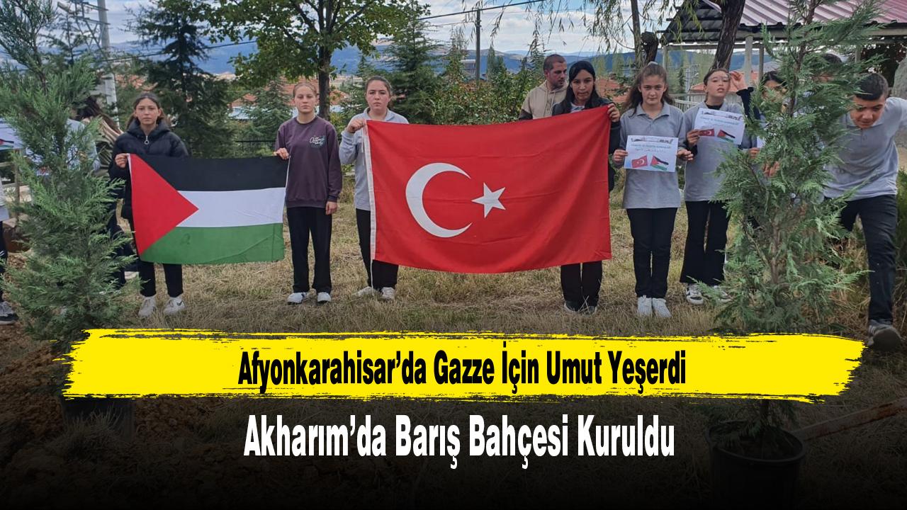 Akharım Ortaokulu Okulu yönetimi, öğretmen ve öğrencileri birlikte okul bahçesine barış bahçesi kurdu. Okul bahçesinin bir bölümünü çitler ile bölerek ağaçlandıran okul yönetimi ve 160 öğrenci barış bahçesine 20 çam ağacı dikti. Yanlarında Türk bayrağı ve Filistin bayrağı getiren öğrenciler etkinlik boyunca bayrakları taşıdılar.