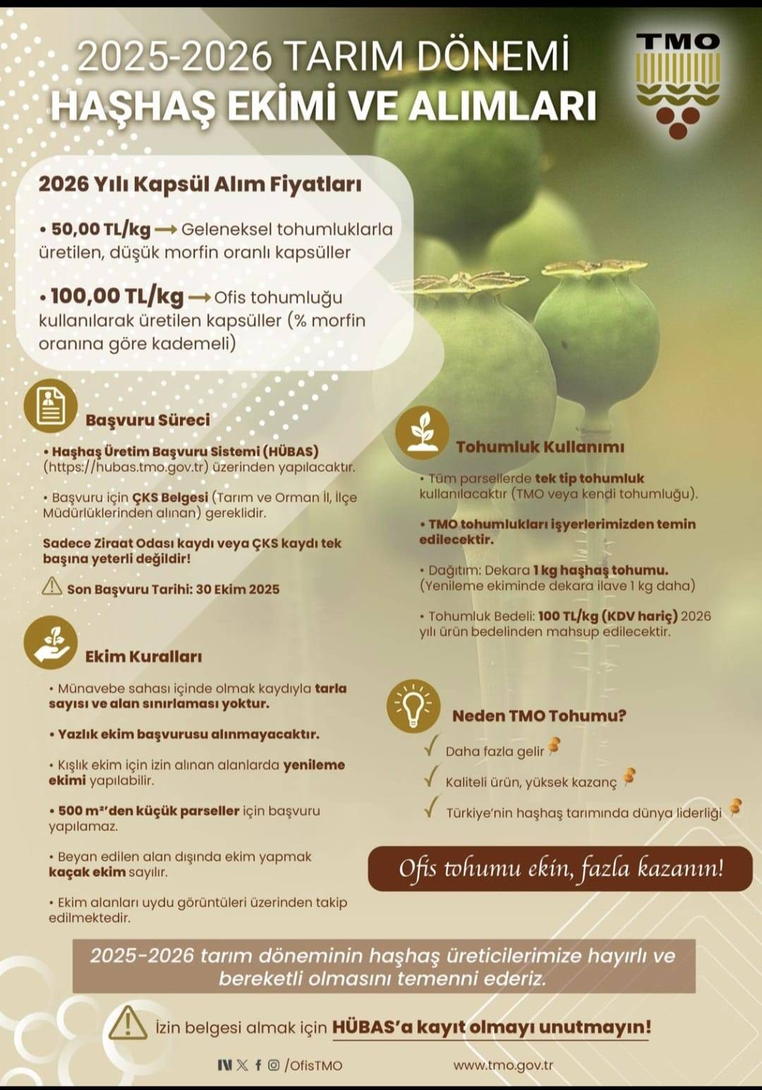 Toplantıda dikkat çeken bir diğer konu ise haşhaş kapsülü alım fiyatları oldu. Yetkililer, fiyatların geçen yıla göre %100 artırıldığını açıkladı. Ayrıca, veraset nedeniyle ekilemeyen tarlalara taahhütname ile ÇKS kaydı yapılarak haşhaş ekilebileceği bildirildi.