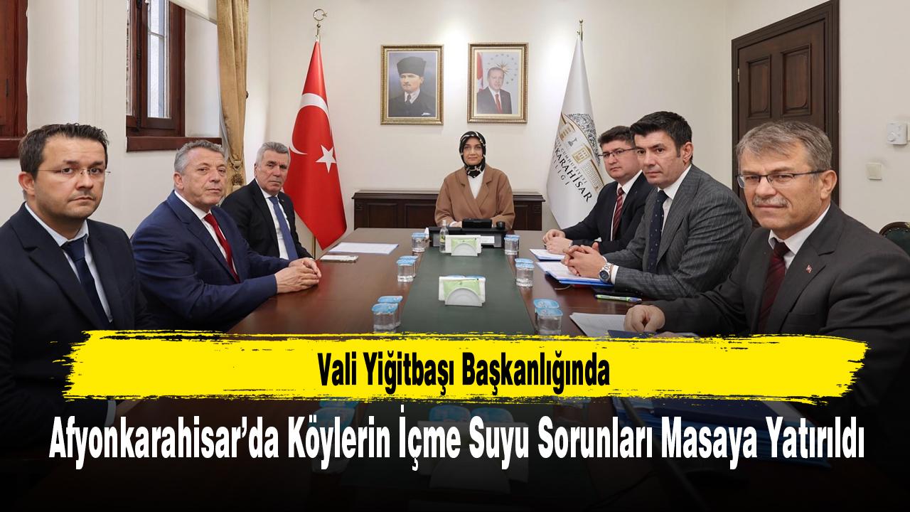 Afyonkarahisar’da köylerdeki içme suyu hizmetleriyle ilgili önemli bir toplantı gerçekleştirildi. Vali Doç. Dr. Kübra Güran Yiğitbaşı başkanlığında yapılan toplantıya; Vali Yardımcıları Yalçın Sezgin, Murat Büyükköse ve İhsan Ayrancı’nın yanı sıra İl Özel İdaresi Genel Sekreteri Osman Ziya Bilim, Su ve Kanal Hizmetleri Müdürü Kadir Örnek ile yüksek mühendis Denizer Demirkol katıldı.