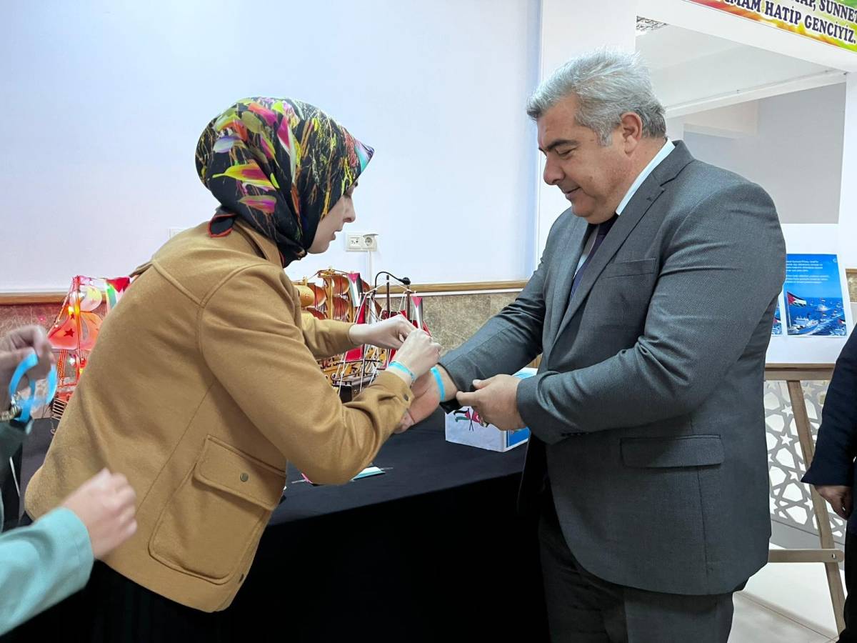 Etkinlik, İl Müdürü Miraç Sünnetci ve Şube Müdürü Abdullah Kaya’nın bileklerine “Sumud Filo Destek” simgesi olan turkuaz kurdelelerin takılmasıyla son buldu.