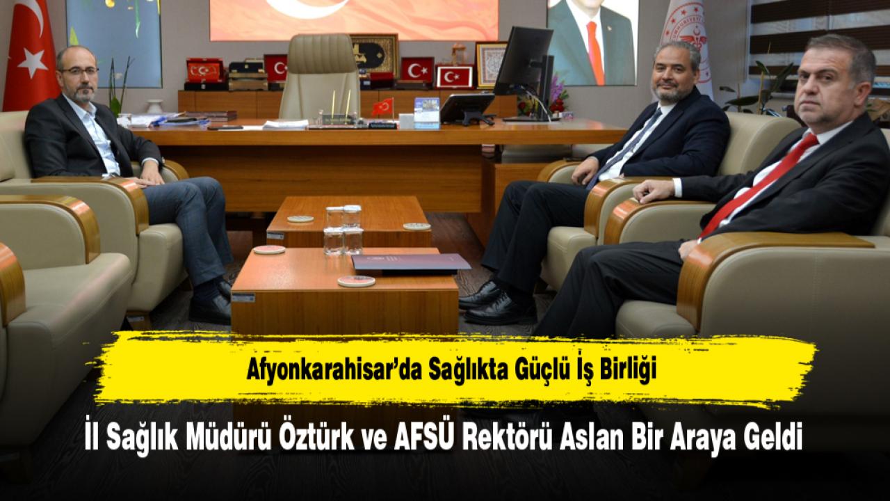 Afyonkarahisar İl Sağlık Müdürü Dr. Hakkı Öztürk ile Afyonkarahisar Sağlık Bilimleri Üniversitesi (AFSÜ) Rektörü Prof. Dr. Adem Aslan, kent genelinde sağlık hizmetlerinde koordinasyonu artırmak ve daha etkin bir hizmet modeli oluşturmak amacıyla bir araya geldi.