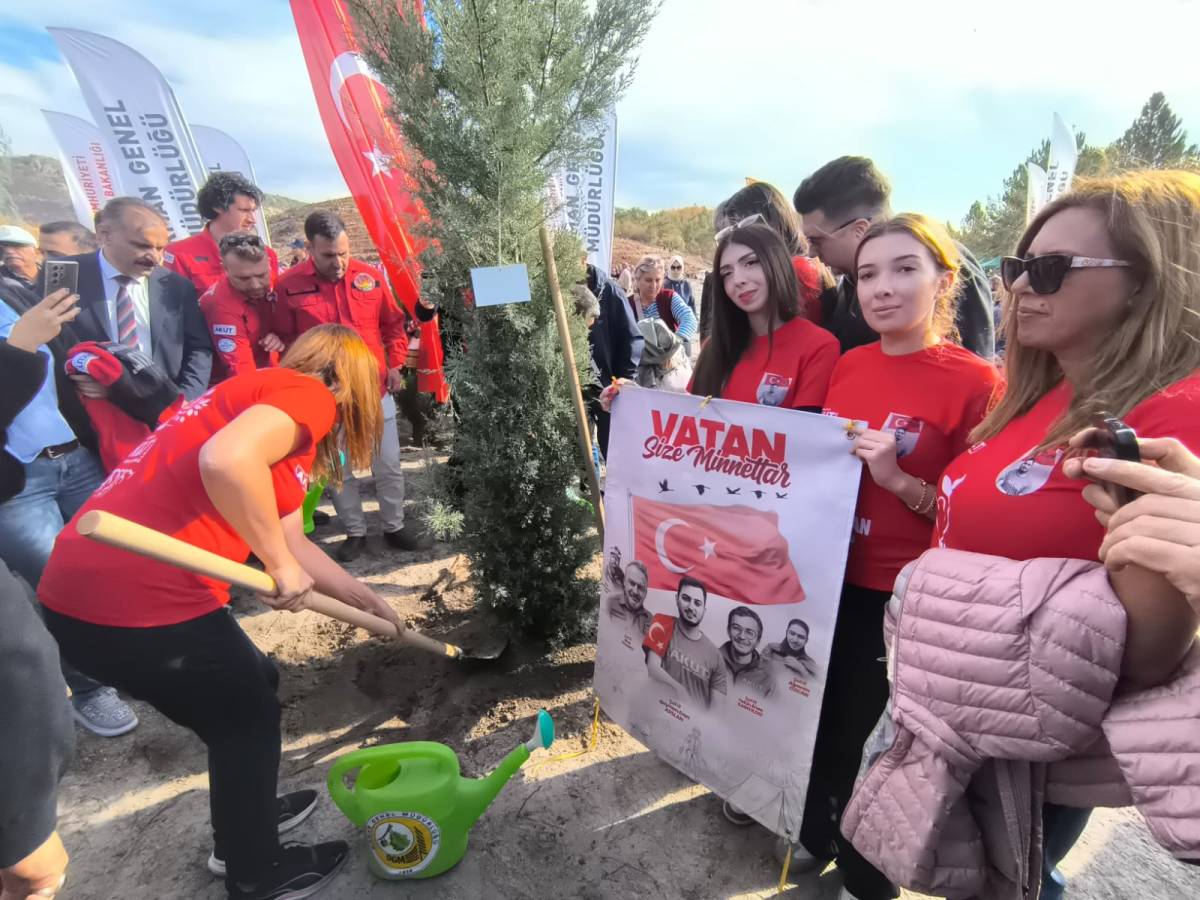 Çetin, konuşmasının devamında bu kahramanların hatıralarını yaşatmak adına hatıra ormanları kuracaklarını belirterek, “Bu kapsamda bugün burada sedir, karaçam, lavanta, badem, mavi selvi, mavi ladin ve dişbudak türlerinden olmak üzere 15 bin 120 civarında fidanı toprakla buluşturacağız. Bugün Afyonkarahisar genelinde 17 farklı noktada 198 bin fidan dikilecek. Her bir fidan şehitlerimizin adını yaşatacak ve gelecek nesillere nefes olacak.” ifadelerini kullandı.