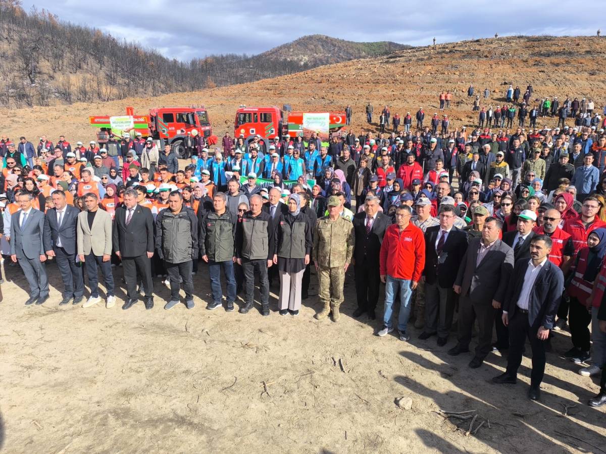Törende, protokol üyeleri, öğrenciler, sivil toplum kuruluşları ve vatandaşlar ellerine kürekleri alarak fidanları toprakla buluşturdu. Etkinlik alanında “Şahidimiz Toprak, İmzamız Fidan – Sevdamız Yeşil Vatan” sloganı altında yüzlerce kişi yeşil vatan için bir araya geldi.